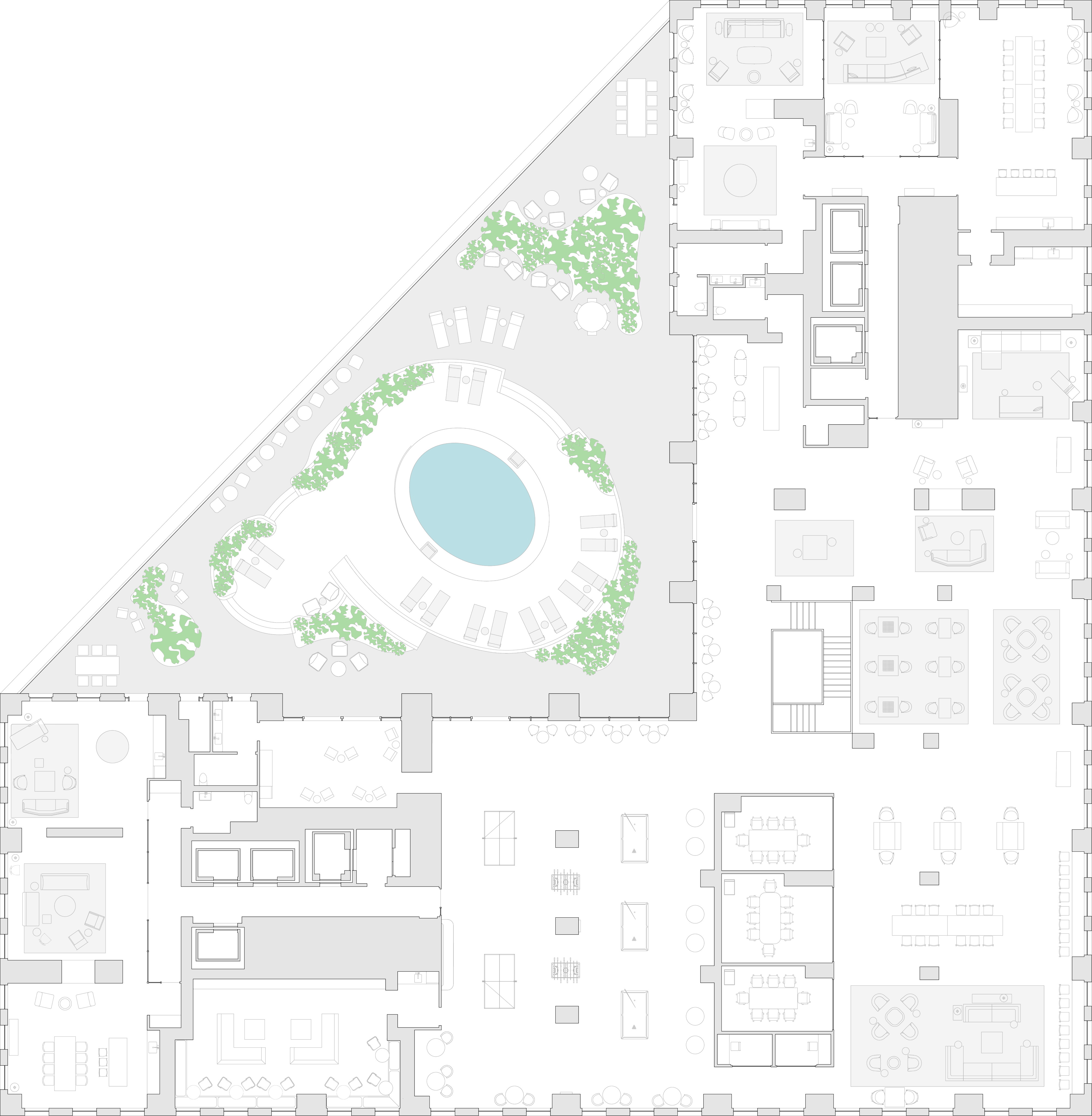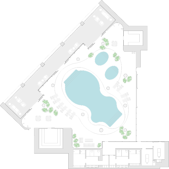 The Club at 1DSQ offers over 45,000 square feet of amenities including a full-service fitness center with indoor and outdoor pools, multiple resident lounges and outdoor terraces.