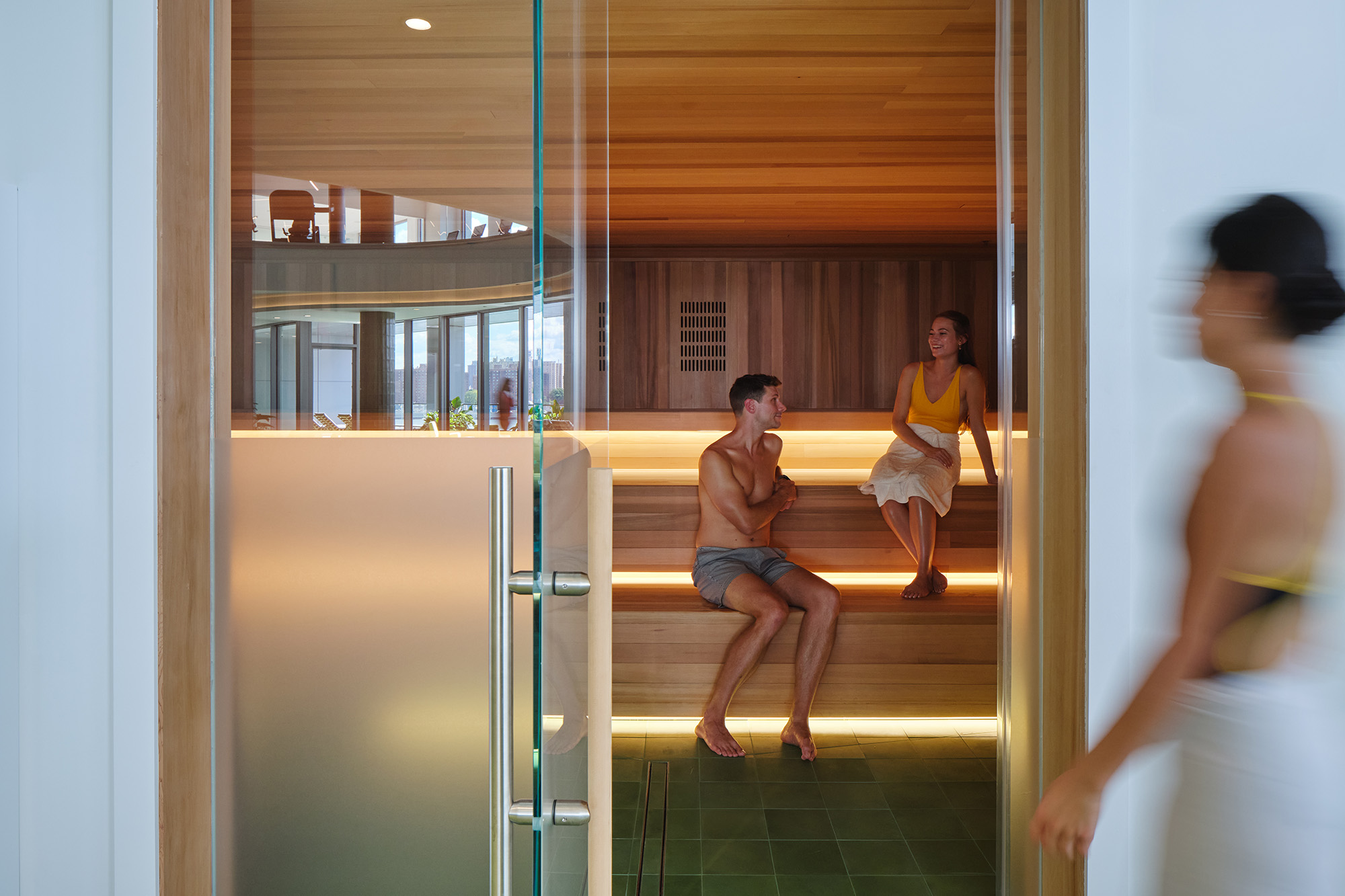 The Club at 1DSQ offers over 45,000 square feet of amenities including a full-service fitness center with indoor and outdoor pools, multiple resident lounges and outdoor terraces.