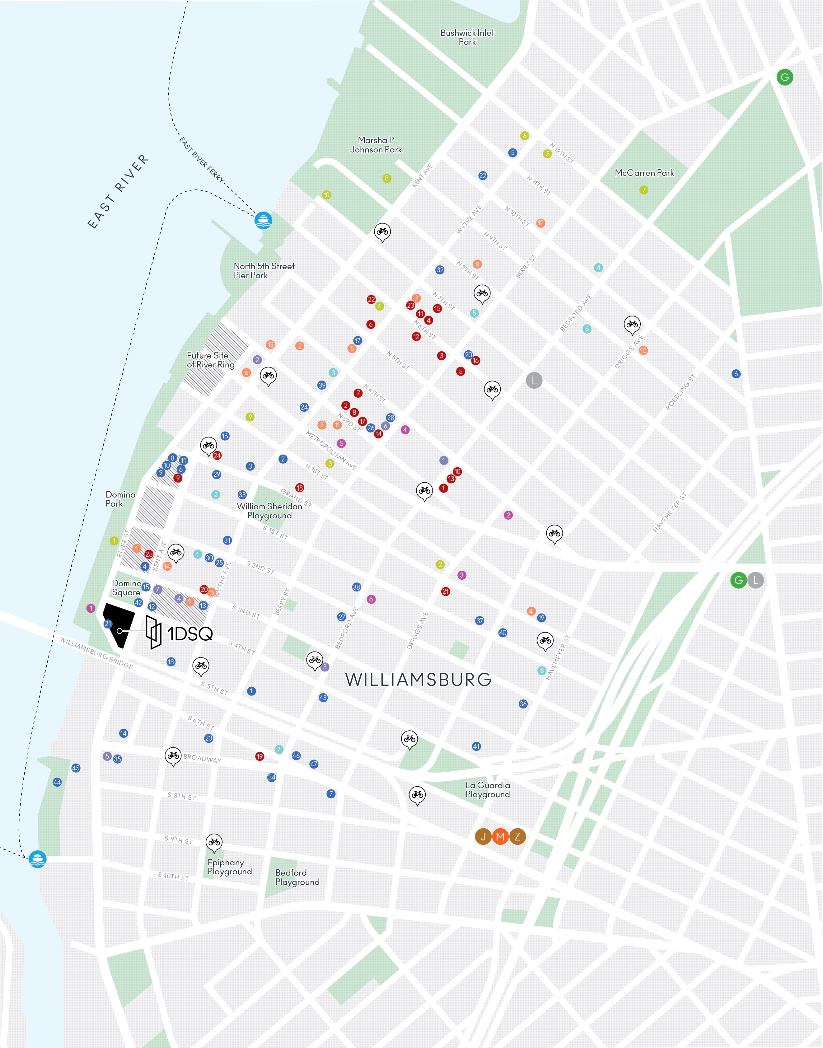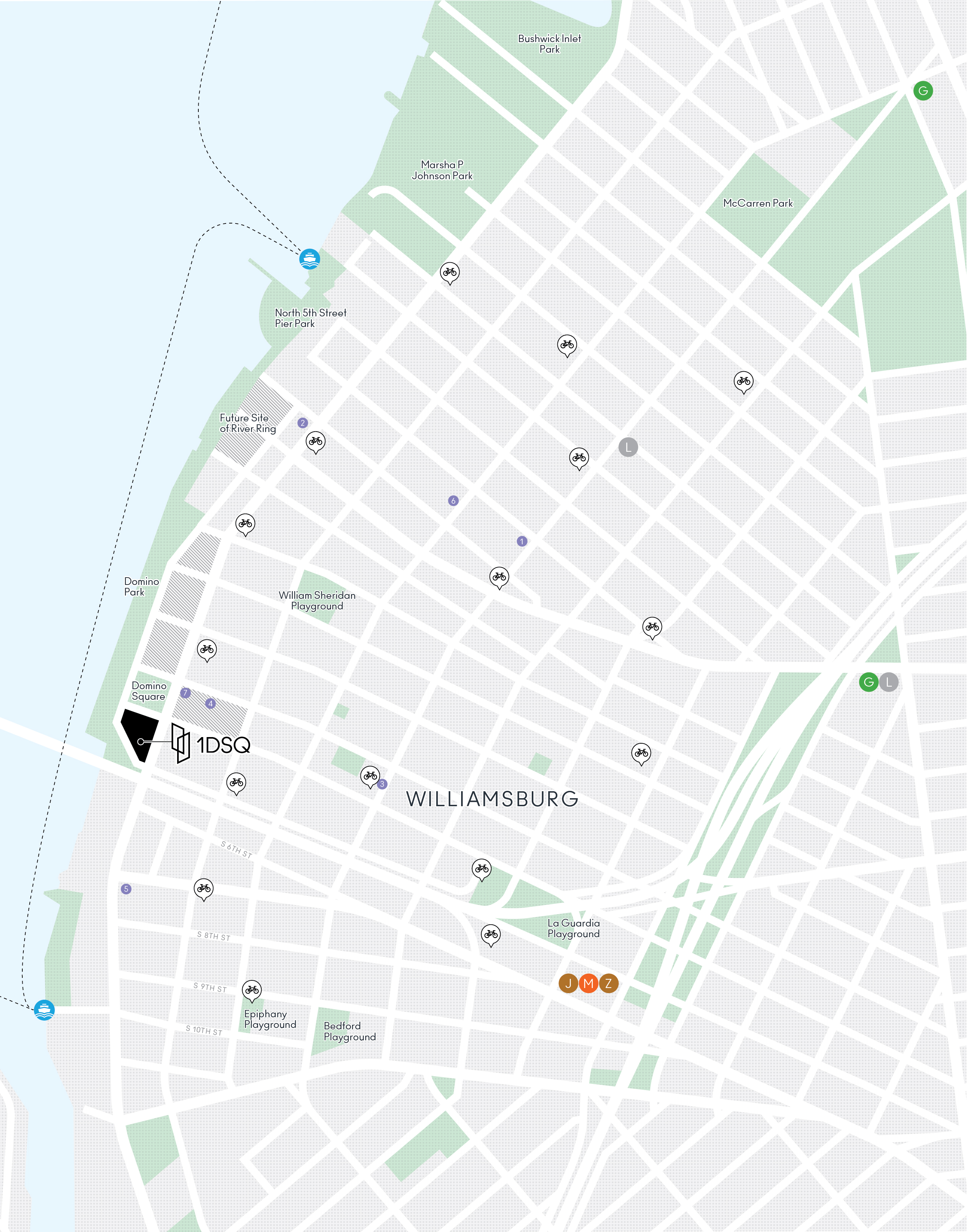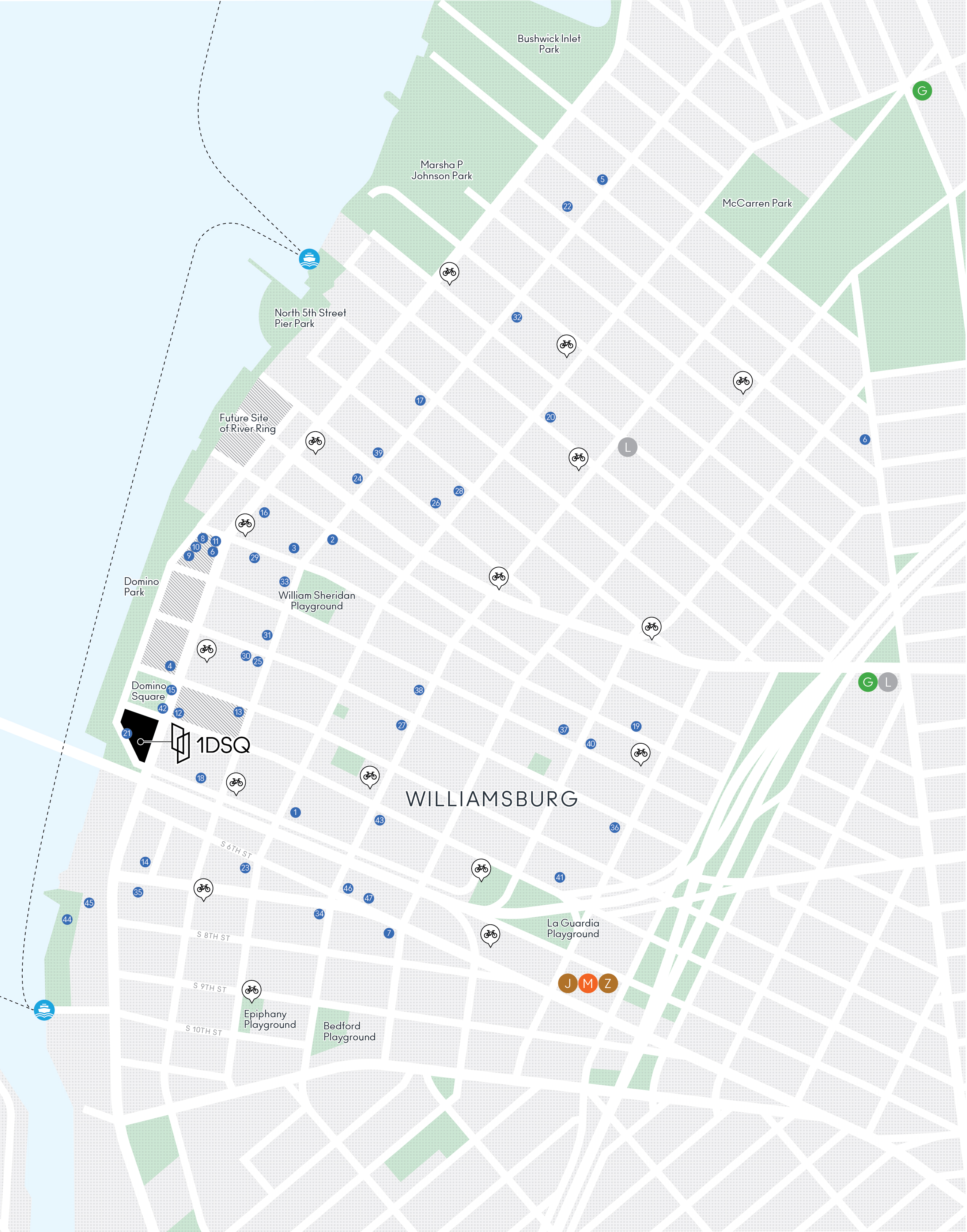 One Domino Square is nestled on the Williamsburg waterfront besides one of the city’s most celebrated green spaces, Domino Park. Residents are invited to engage with the lush landscapes of the park while immersing themselves in the dynamic culture of Williamsburg, Brooklyn’s most vibrant neighborhood. Many celebrated restaurants, independent boutiques and iconic cultural institutions are only moments away.